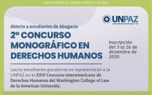 El Departamento de Ciencias Jurídicas y Sociales invita a los/as estudiantes de Abogacía a participar del Concurso Interno para la selección del equipo que representará a la UNPAZ en el XXVI Concurso Interamericano de Derechos Humanos del Washington College of Law de American University en mayo del 2021.